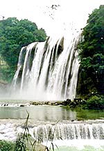 大瀑布高74米,宽81米,是中国第一大瀑布,也是世界最阔大壮观的瀑布之一。河水从70多迷高的悬崖绝壁上直泻犀牛潭中,响声震天,十里之外,即闻其声。