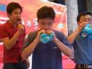 10分钟的填写奖券时间很快就结束了,接下来就是蓝德的技术人员进行新技术介绍,还利用硕大的硬盘模型教大家辨别正品与水货硬盘的方法及区别(还有机会亲自上台贴防伪标签),虽然天气很热,足够大家出个几斤汗,但台下的观众们听的还是非常仔细,只有仔细听以后才不会上当!当然,蓝德公司不会让大家一直这样辛苦的,为了活跃气愤,让大家高兴而来,满意充实而归,他们还准备了大型的知识竞答幸运大转盘活动,除了丰富的奖品外,还有可能以优惠的价格购买市面上主流的硬盘产品(那可是40G 7200转的金钻呀!),参赛的方法很简单,条件就是仔细听有关硬盘的知识讲解和认真填写正确的抽奖券。很快,第一个幸运儿就诞生了,他就是来自本地的南昌大学学生,他机智的回答完主持人的种种问题,转动了幸运转盘,最后以优惠399元的价格拿走了40G 7200转的金钻,上午的活动总共抽出了10位幸运者,其中有一位朋友最开心,甚至在台上手舞足蹈起来,当场在台上乱蹦,很可惜,笔者的快门按的慢了,没能留住精彩时刻,不过激动心情大家都能理解,他以优惠499元的价格拿走了奖品。