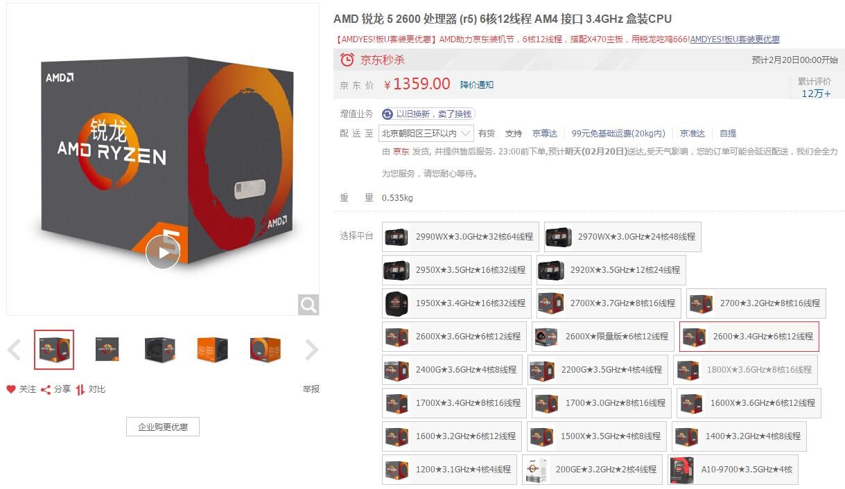 锐龙5 2600X购买链接:https://item.jd.com/6902454.html#crumb-wrap