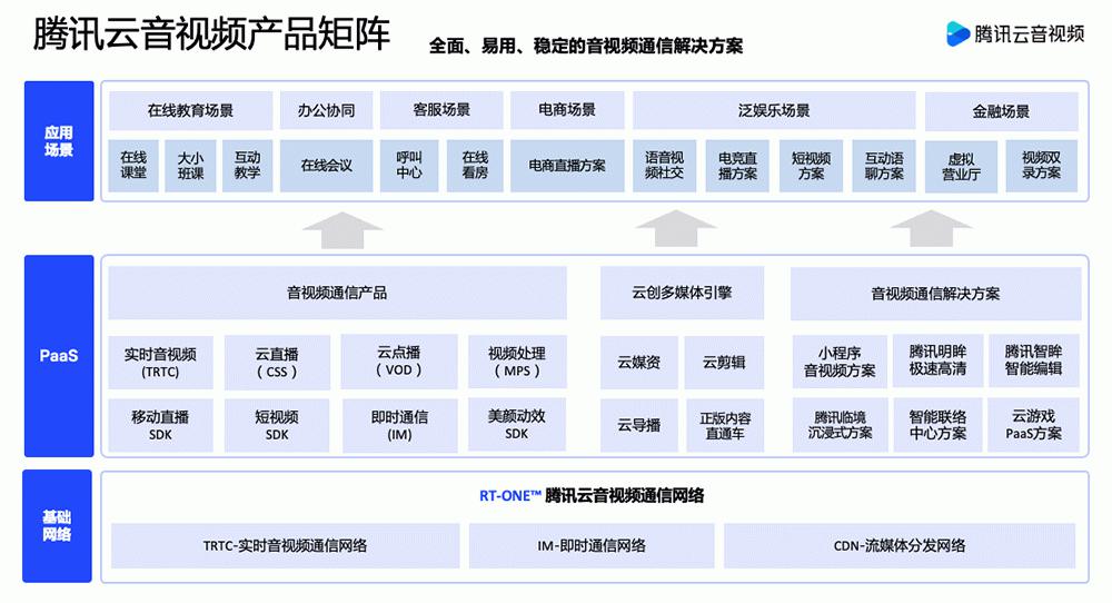 5月18日,“腾讯云音视频”品牌正式发布。整合后的腾讯云音视频,不仅涵盖了音视频通信基础网络、音视频通信PaaS产品,还包括了针对各个垂直场景与合作伙伴开发的联合解决方案。