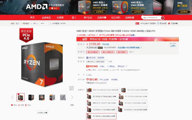 直降领券24期免息 AMD锐龙7 5800X京东史低推荐