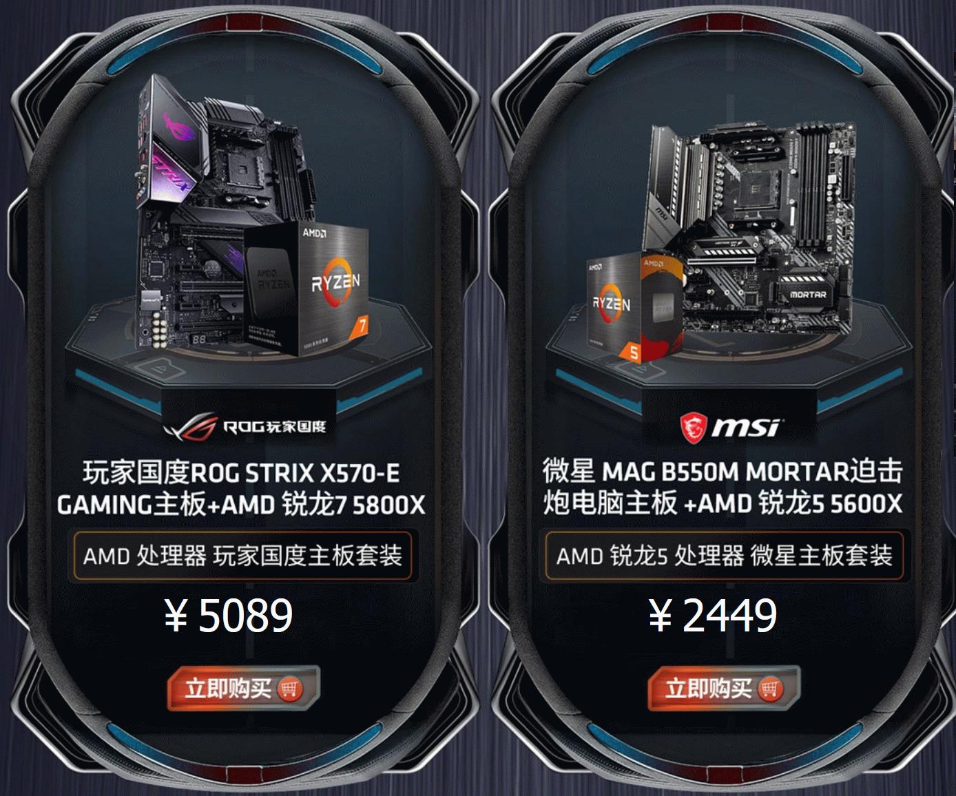 活动中同时准备了各大品牌的板U套包,无论您心仪华硕、微星、七彩虹还是华擎主板搭配AMD锐龙处理器都是更加超值的选购方案。