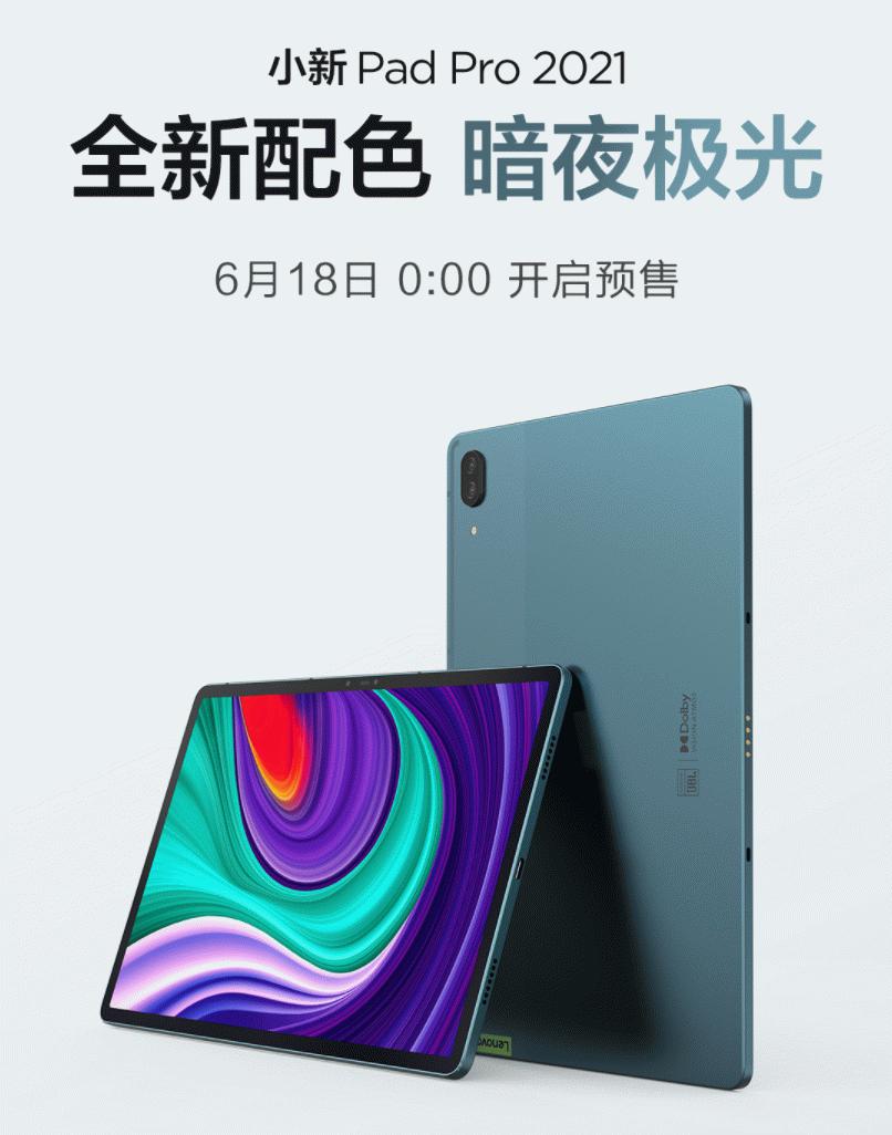 联想小新Pad Pro 2021全新配色暗夜极光版将于6月18日零点开启预售,骁龙870、6+128GB版首发价2699元。