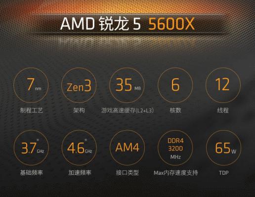 AMD锐龙5 5600X处理器采用了全新的Zen3架构,7nm制程工艺,6核心12线程的配置以及高达4.6GHz的Max主频和35MB的高速游戏缓存。Zen3架构的到来让AMD锐龙处理器产生了翻天覆地的变化,全新CCX架构与核心布局,缓存的升级换来了IPC的显著提升,应用中核心与缓存的通讯连接大大加速,内存延迟大幅降低。