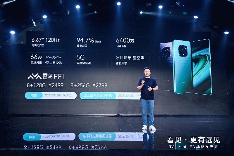发布会上,首款雷鸟手机FF1正式亮相,“快意不限速,灵感不设限”这款拥有极致外观和性能体验的潮流手机,搭载了6.67英寸超窄边框无界大屏,120Hz高刷新率,66W疾速闪充和6400万超清像素,有冰川湖翠和星空黑两种时尚配色可选,8+128G版本售价2499元,8+256G版本售价2799元。