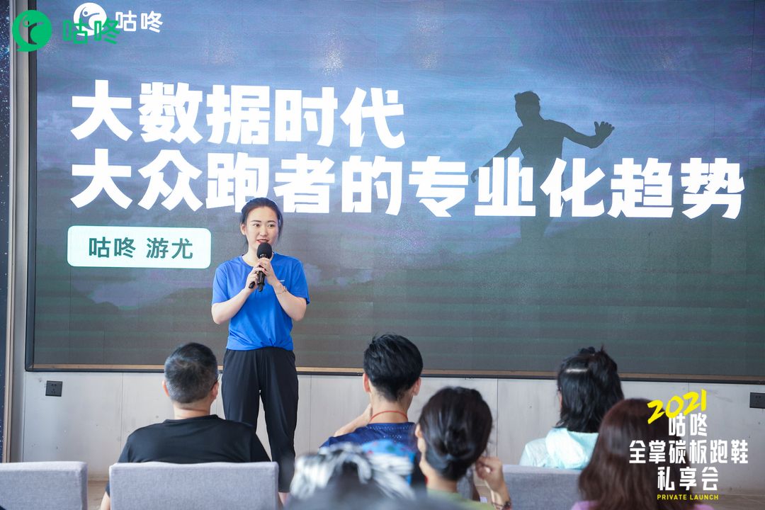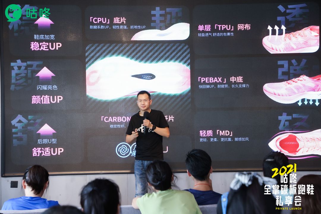 小熊在线讯 8月31日,咕咚在北京举办的新品私享会上正式发布了万众瞩目的全掌碳板跑鞋42K•造风者RUN。 作为咕咚首款专业竞速碳板跑鞋,42K•造风者RUN采用了PEBAX中底超临界科技材料,以3大核心技术助力提速破PB,性能出众、软轻弹透,让跑者的每一步都如踏风而行,分享现场受到了多位跑神的交口称赞。