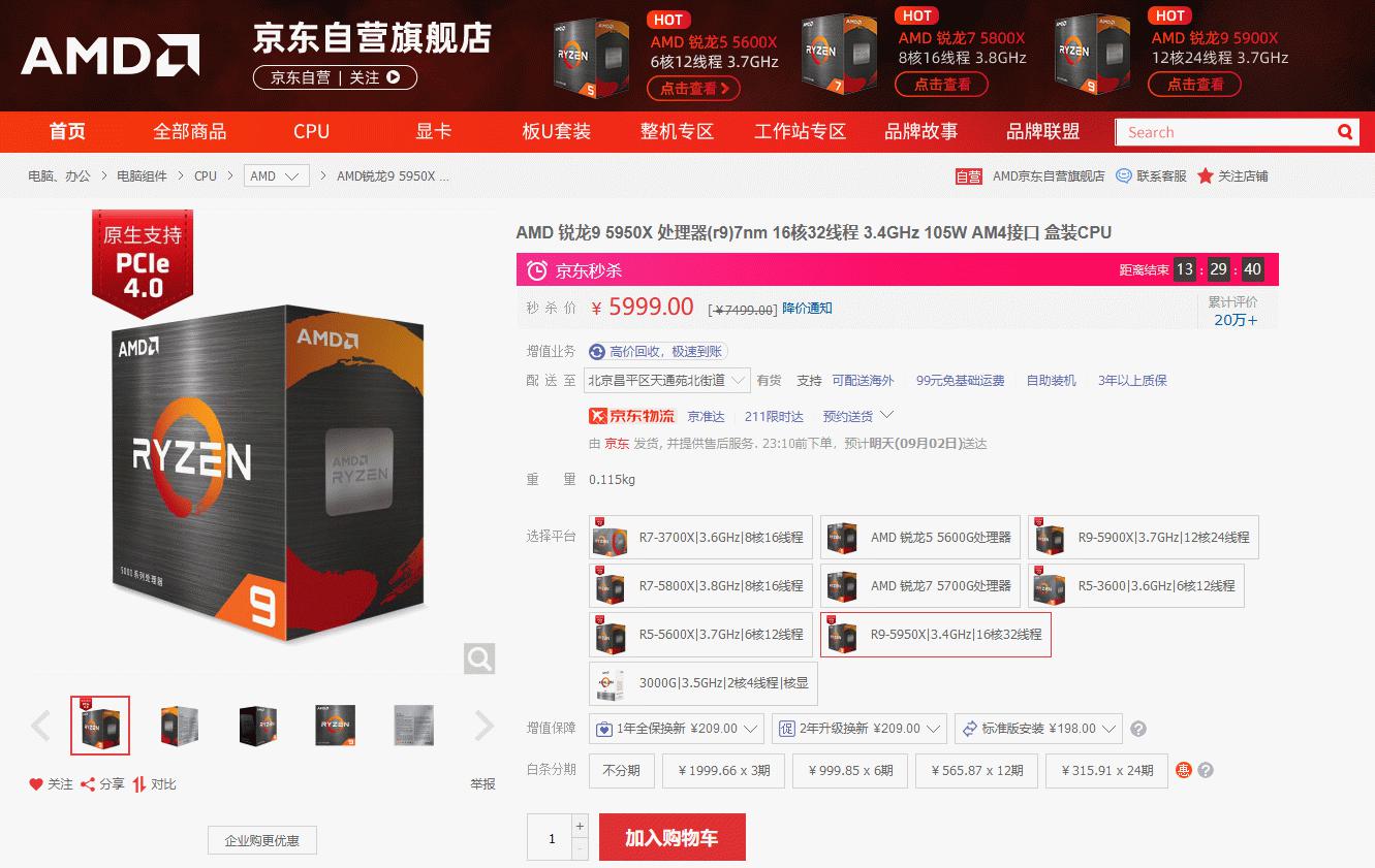 史诗新低价真香 AMD锐龙9 5950X京东限时秒杀