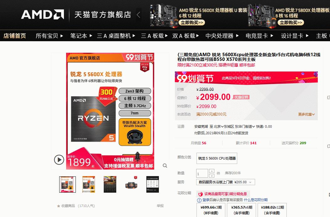 目前AMD锐龙5 5600X处理器即将在AMD天猫官方旗舰店上的报价是2099元,参与满减活动后只要1899元,同时享受花呗三期免息的优惠。这样的力度已经是之前年中大促的水平了,目前可以直接拿下的确令人惊喜。广大学生玩家想要升级整机平台的话,就先从AMD锐龙5 5600X开始吧!