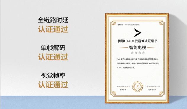 为此,TCL&腾讯START云游戏深度合作,深度开发和体验优化,为玩家打造高质量的云游戏体验,无需主机、无需下载,游戏电视也能够体验到PC/主机上的游戏体验。而且TCL T9E还是行业内首家腾讯START云游戏四星认证主机,全链路时延达到平均68.8ms ,单帧解码平均4,1ms,视觉帧率59.86fps。