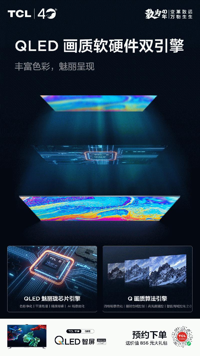 八年六代技术的延伸,10亿原色屏和10年好色彩,TCL为用户带来了领先行业的观看体验,为用户留住世界的美感,也展现了在量子点技术上研发的决心。