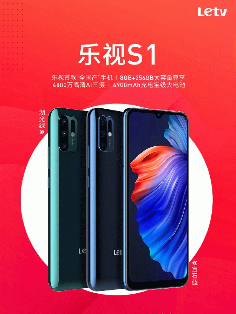 9月30日,乐视手机S1在乐视商城正式开售,售价1599元。目标用户是网约车司机、外卖小哥,以及父母一辈等。乐视手机S1有湖光绿、宝石蓝配色。采用6.53英寸720P级别的水滴屏,搭载虎贲T7510芯片,8GB+256GB存储,支持5G网络连接,背面有三摄镜头模组和一颗实体指纹识别按键,电池容量为4900mAh。内置华为账号体系、华为HMS Core以及音乐、阅读在内多款华为应用。