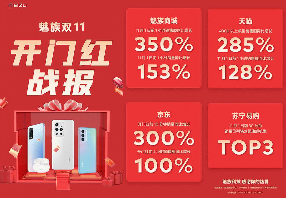 魅族双11开门红战报出炉 官方商城销售额大增350% ......