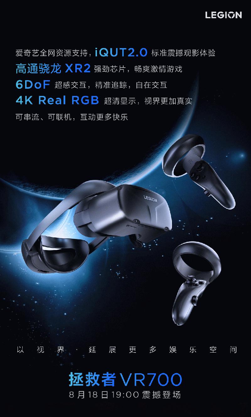 高通骁龙XR2加持 6DoF全面感知交互 联想拯救者头显VR700将于8月18日登场 ......