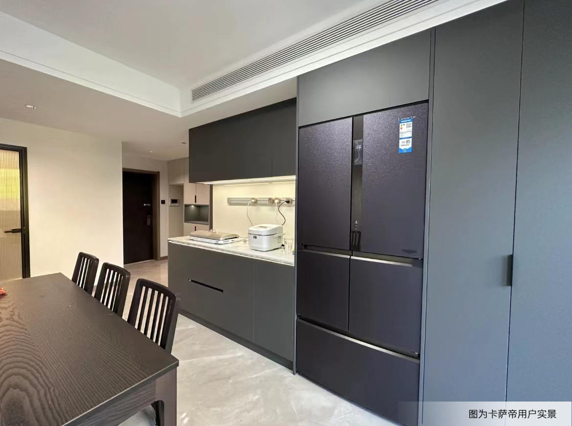 这背后是无数个卡萨帝的核心科技在保驾护航:升级后的“空气洗”,创新迭代“控风、控湿、控速、控温、控时”精准的五度数控科技,能够将衣物专属的水溶精华液打散成微米级精华分子,深入到衣物纤维,为衣物复色焕新;而双塔结构设计的空调,运行时在镂空出风口后方形成负压区,吸收自然风与冷风在出风口混合后再吹出,实现凉而不冷、暖而不燥;冰箱不仅提供了涵盖AI智慧语音、WiFi智能物联等在内的智慧场景解决方案,还以原创的平嵌科技实现了“纯平无缝”,可轻松嵌入深600mm、宽800mm的标准橱柜,并加入了与橱柜踢脚线、腰线齐平的追线设计,让冰箱与橱柜“线线相通”。