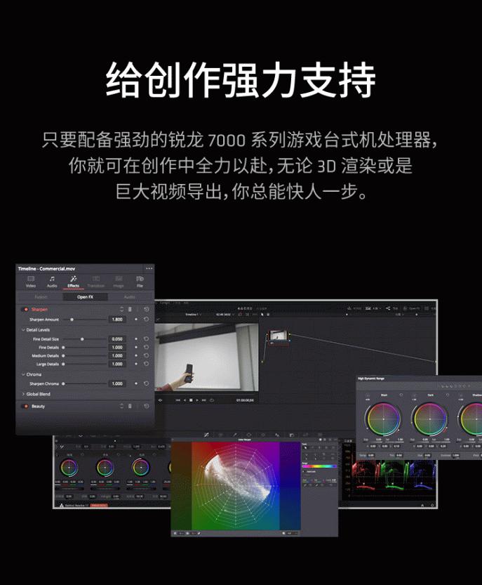 AMD 锐龙7 7700X处理器在生产力性能上同样拥有非常不错的表现,可以为用户带来非凡的体验,无论是3D渲染/视频剪辑/广告创意等方面都能提供强大性能支持,让您尽享创意成果。
