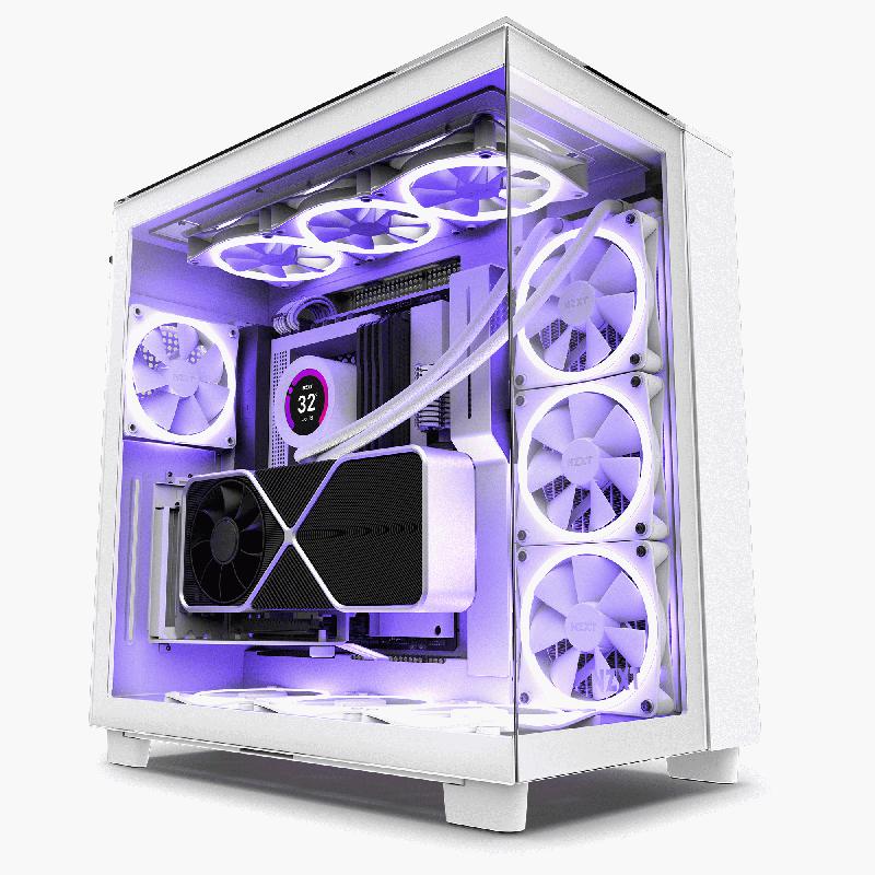 NZXT H9 Elite独有特色功能:钢化玻璃顶板和透明的顶部风扇/散热器支架;配备四个120mm RGB Duo风扇;风扇预装在右侧作为进气扇,以达到优秀CPU和GPU性能表现;配备RGB风扇控制器V2,具有三个风扇信道和六个照明信道,可透过NZXT CAM软件进行控制。
