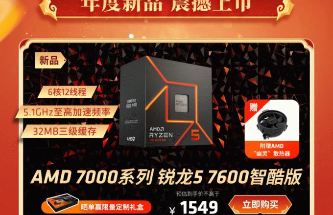 新年换新U AMD 锐龙5 7600智酷版处理器京东好评发售中