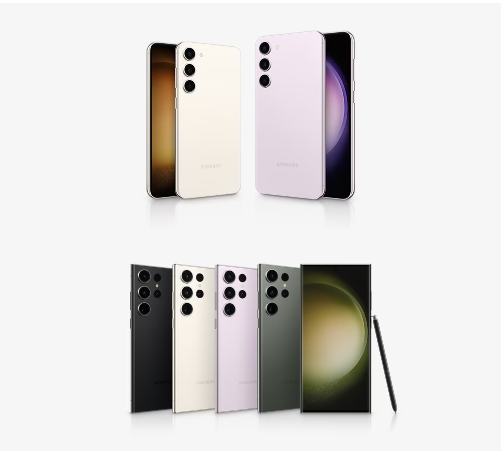 Galaxy S23/S23+:悠野绿、悠远黑、悠雾紫、悠柔白4款配色,鲜柠绿、远山灰2款三星商城专属配色。Galaxy S23:8GB+128GB 5699元、8GB+256GB 6199元、8GB+512GB 6999元;Galaxy S23+:8GB+256GB 7499元、8GB+512GB 8499元。