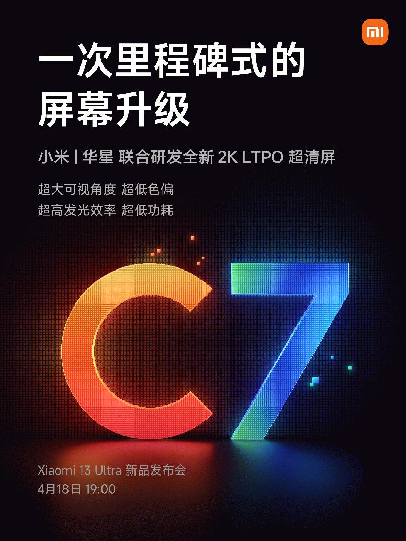 小米&TCL华星联合研发 小米13 Ultra采用新一代C7 2K AMOLED屏 ......