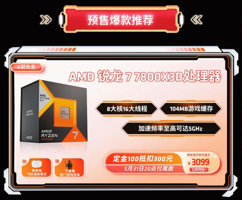 首先是最重磅的定金膨胀预售活动,多款锐龙7000处理器都有参与,5月31日晚上8点支付定金,在后续支付尾款的时候可以抵扣更多的金额。根据不同的型号有差异,最高100元可抵500元,详细金额请大家前往活动页面查看。