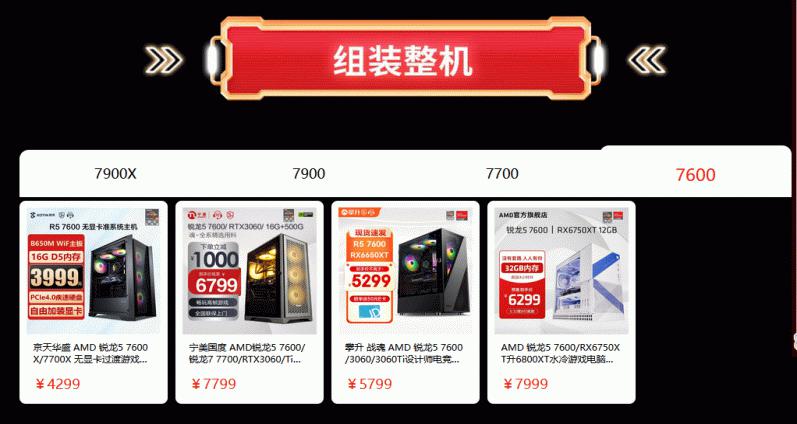 AMD京东自营旗舰店爆品抢购阶段还包含了多种DIY商品,不仅有最为热销的锐龙7000处理器单品,还有板U套装和CPU+主板+内存三件套装,让您一站式购齐直接搭建出全新的AM5平台战未来。当然还有各大装机品牌商使用锐龙处理器打造的整机产品,对于不熟悉攒机的小伙伴非常友好。当然活动页面还有更多DIY产品等待大家的挖掘,总有适合您的那一款。
