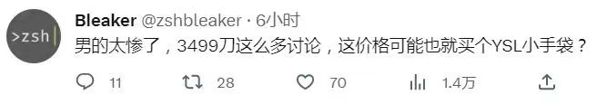 网友@Bleaker调侃:男的太惨了,3499刀这么多讨论,这价格可能也就买个YSL小手袋?