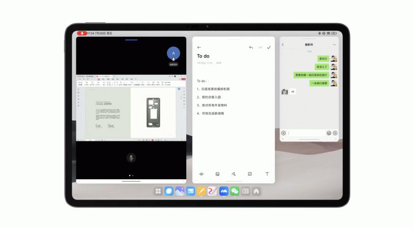 为了满足超大尺寸平板更强的移动轻办公属性,小米平板 6 Max 14 专为大屏打造全新模式「工作台」。充分利用大屏视野,让复杂多任务操作更简单,效率倍增。全新设计的桌面交互逻辑,桌面去除常规的干扰信息,应用默认以窗口形式在大屏铺开,可同时处理 4 个窗口,刷资讯、看视频、做笔记、回消息……原来需要来回切换的复杂操作现在可以在一个桌面同时呈现,多轨并行互不干扰。
