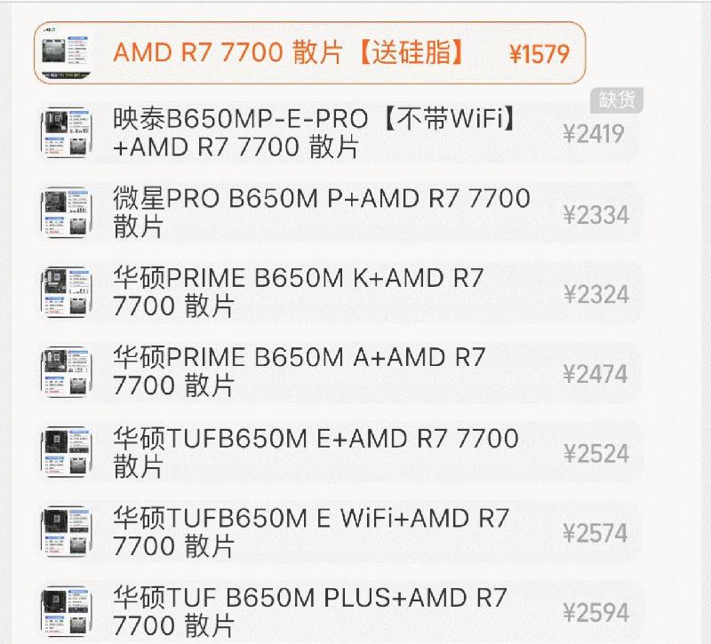虽然离一年一度的双十一大促还有一段时间,但是目前DIY市场的降价潮已经蠢蠢欲动了,想要在近期攒上一台主流整机的朋友可要看过来,今天为大家搜罗了性价比极高的套装组合,就是选用AMD(超威)的锐龙7 7700处理器散片装搭配上近期降价的B650芯片组主板,曾经3000多的套装目前2000出头都能搞定了,中端性能配备却只要入门级的价格,性价比真的太高了。