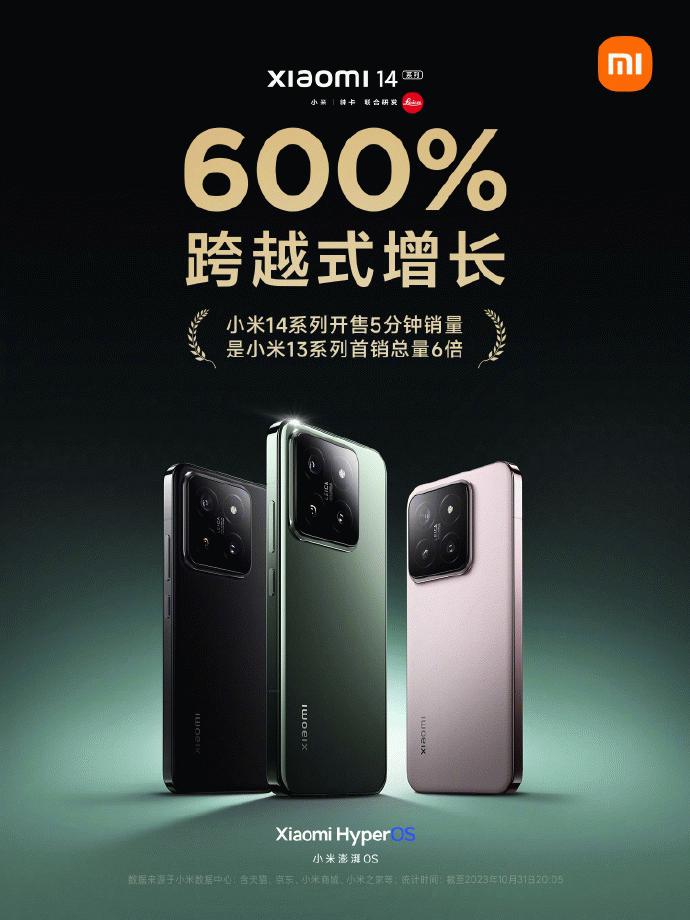 小米14系列卖爆了!开售仅5分钟销量就猛增至上代首销总量的6倍