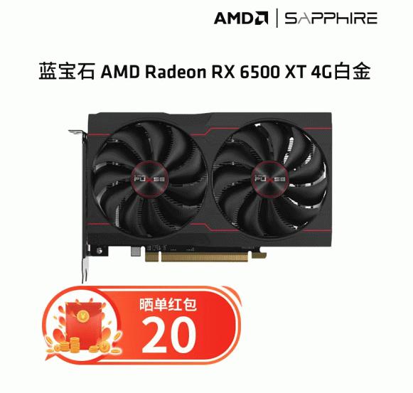 蓝宝石RX6500XT 4G白金,京东11.11大促到手价1199元,购买链接,一键直达:https://item.jd.com/10043699895437.html?bbtf=1 除此以外,京东11.11大促期间,AMD官方旗舰店部分产品还可享受晒单可领20元红包活动,多款组装机及其他显卡产品促销也在进行中,登陆AMD京东11.11活动页,获取更多优惠信息。