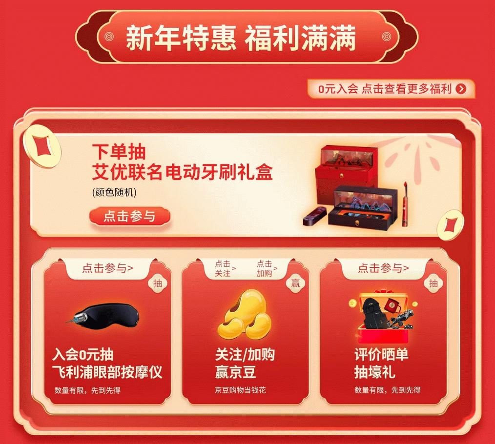 AMD京东自营旗舰店的新年活动内容有很多,大家首先要参与的还是“0元入会”活动,加入会员就可以解锁一系列的福利了,0元抽飞利浦眼部按摩仪。关注加购商品还能赢京豆,下单抽艾优联名电动牙刷礼盒,参与评价晒单抽壕礼。下单后获得的会员积分可以兑换各种AMD周边产品,另外首次下单的会员可返1000京豆,复购的会员可以抽罗技鼠标。不仅会员活动丰富多彩,活动页面的AMD DIY全线产品的整体促销力度也绝对可以让广大DIY玩家满意。