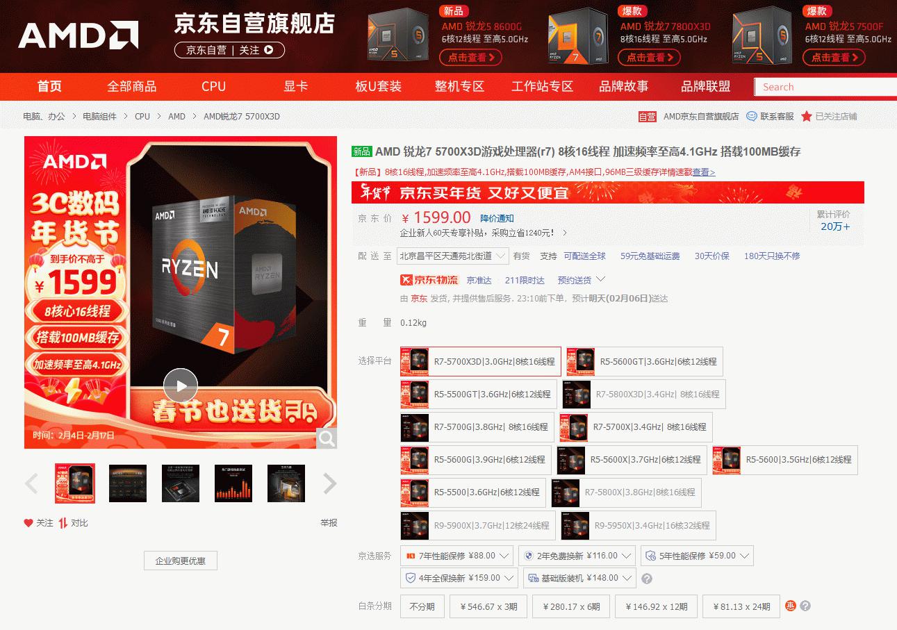目前AMD 锐龙7 5700X3D处理器在AMD京东自营旗舰店的首发报价到手不高于1599元,加入AMD京东自营旗舰店还有各种福利同享。想要在春节假期来《原神》过海灯节的玩家朋友们现在赶快下单升级自己的电脑吧。