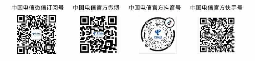 获取更多信息,请访问中国电信官方网站www.chinatelecom.com.cn或者关注“@中国电信”微信订阅号、官方微博、抖音和快手账号。