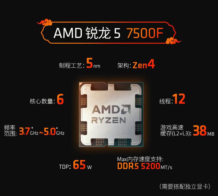 F系列超值三剑客!AMD 锐龙5 7500F处理器攒机必备