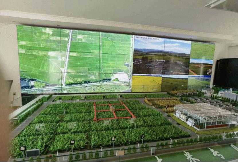 步入光东村延边大米展示中心,首先映入眼帘的是一套制作精美的实体沙盘和硕大的3行6列拼接的液晶显示屏,这是中国联通为光东村打造的数字化农业展销平台的一部分,沙盘向游客们展示了现代化农业生产全过程及农耕和民俗文化,物联网大屏显示系统则以简洁的界面、直观的数据实时向游客展示田间作业、作物长势和生产加工情况。