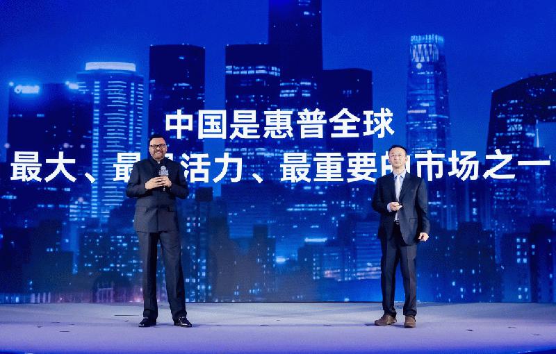 图:惠普公司全球个人信息产品事业部首席运营官 Ketan Patel与中国惠普有限公司副总裁、大中华区个人信息产品事业部总经理周信宏