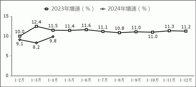 软件业务收入保持较快增长。1-4 月份,我国软件业务收入 3.8 万亿元,同比增长 11.6%。