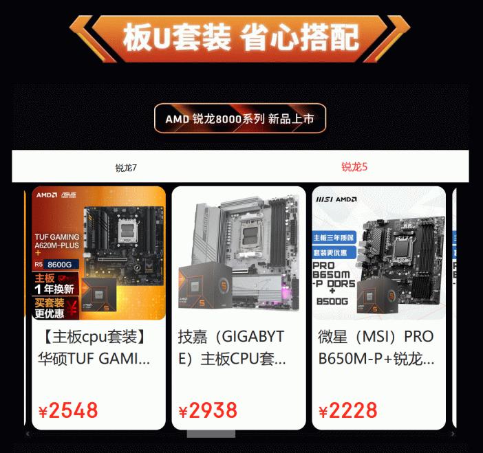 AMD京东自营旗舰店为用户们准备了全系硬件产品,不仅有全新的锐龙8000系列处理器,还有最为热销的锐龙7000系列处理器和经典的锐龙5000系列处理器,同时还有板U套装和卡U套装的超值搭配,让大家一站式购齐。对于不熟悉DIY攒机的用户来说也不用担心,AMD同时准备了多款整机产品,这些由各大装机商合作伙伴打造的主机内外兼修,可以在整机会场仔细挑选。