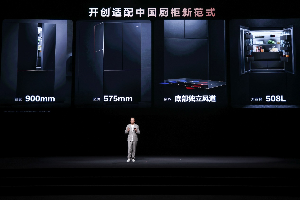 冰箱容量方面,冰箱整机达到超薄575mm的厚度,在900mm宽度下,但最终实现单台508L超大容积,可满足五口之家的整月所需,下抽屉甚至可化身超大冷柜,足以放下整只羊腿。