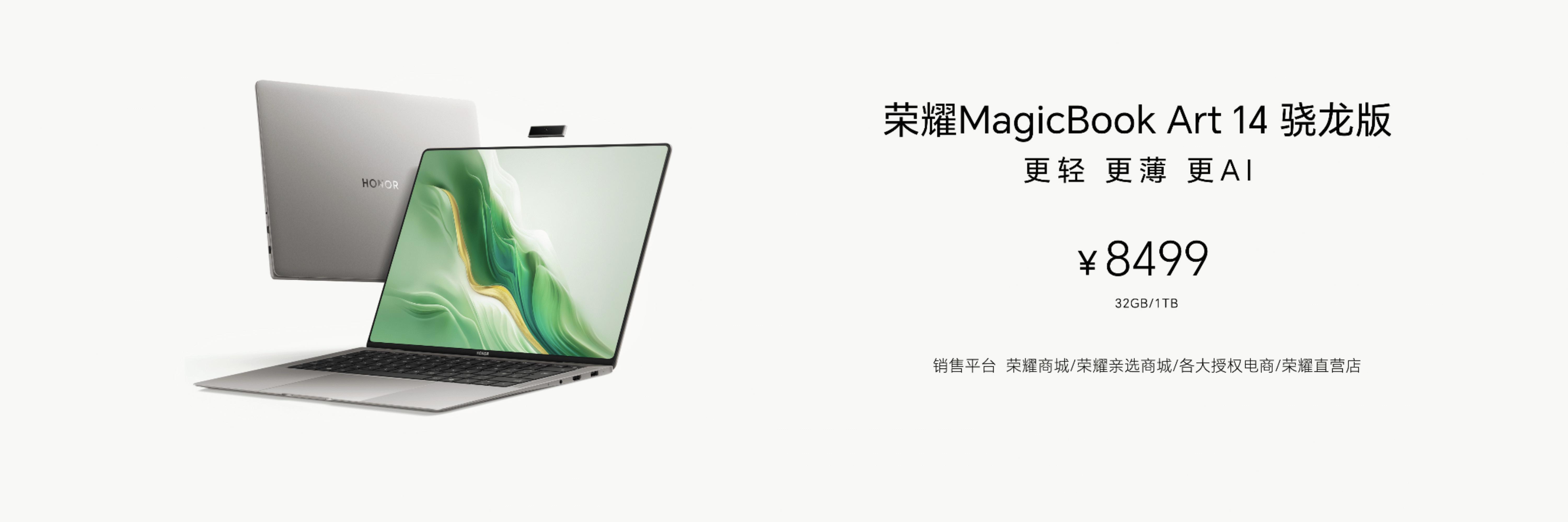 荣耀MagicBook Art 14骁龙版国内发布:AI赋能性能续航,首销限时尊享价8299元