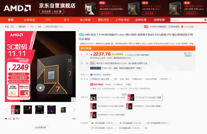 【小熊在线】随着11月11日的临近,今年京东商城的11.11大促即将迎来最高潮,就在开门红阶段之初,AMD(超威)就为DIY玩家们带来了王炸产品-AMD 锐龙7 9800X3D处理器的预售活动,而大家的热情让这款产品的预售很快就完成了预期目标,所以后来的朋友一直表示买不到这款游戏神U。