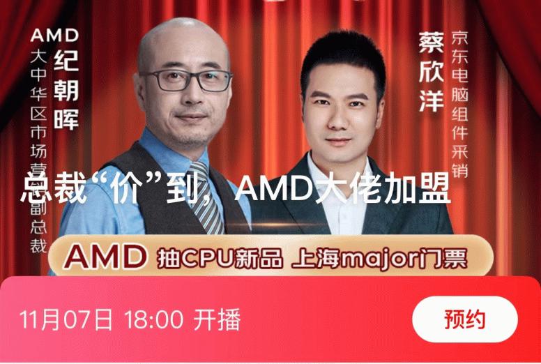 另一项重磅活动就是今晚京东商城的3C数码直播间直播了,11月7日18点-20点,AMD大中华区市场营销副总裁纪朝晖先生和京东商城电脑组件业务部总经理蔡欣洋先生将莅临京东3C数码直播间,共同为广大DIY用户带来一场精彩的直播。届时两位大佬将为大家介绍AMD重磅新品-AMD 锐龙7 9800X3D处理器,还有AMD此次11.11大促的各种活动,想要选购AMD锐龙处理器,板U套装,Radeon显卡,整机和其他DIY产品的朋友都可以前来观看,大佬专属福利现场送不停,一定可以让大家满载而归。