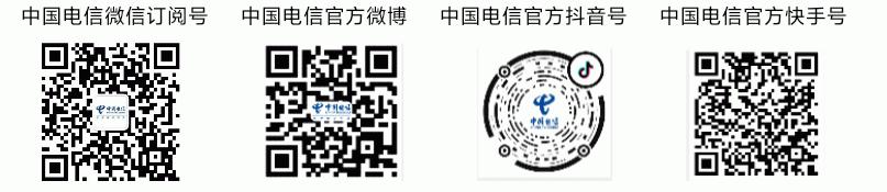 获取更多信息,请访问中国电信官方网站www.chinatelecom.com.cn或者关注“@中国电信”微信订阅号、官方微博、抖音和快手账号。