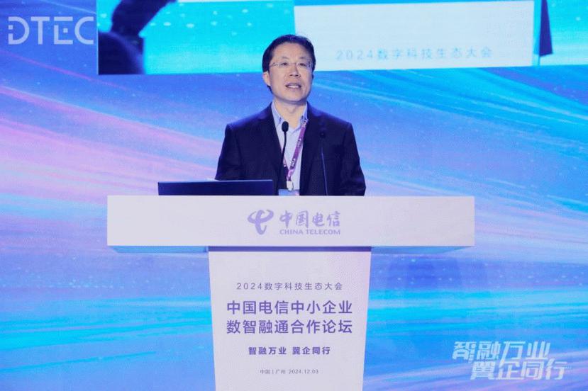 12月3日,2024数字科技生态大会中小企业数智融通合作论坛在广州召开。此次论坛聚焦中小企业数智化转型的关键议题与核心挑战,以“智融万业 翼企同行”为主题,为中小企业在数字化变革浪潮中探寻创新发展的明晰路径,助力中小企业链接全球市场,迈向数智化未来。中国电信副总经理唐珂、中国工业互联网研究院院长鲁春丛出席大会并致辞,中国电子信息产业发展研究院(赛迪)副院长朱敏作主题演讲。大会发布了中国电信“翼智企”中小企业数智化产品与综合解决方案、“翼企同行”中小企业生态合作招募计划,并举办了生态合作签约及表彰仪式。