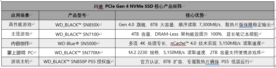 WD_BLACK™ SN8100 NVMe™ SSD的加入,进一步完善了闪迪已有的NVMe SSD产品生态: